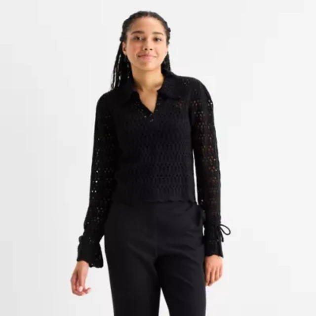 by&by Juniors Womens Short Sleeve Polo Sweater