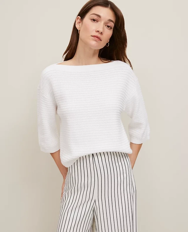 Ann Taylor Weekend Collection Mixed Stitch Wide-Leg Sweater Pant Winter White Women's