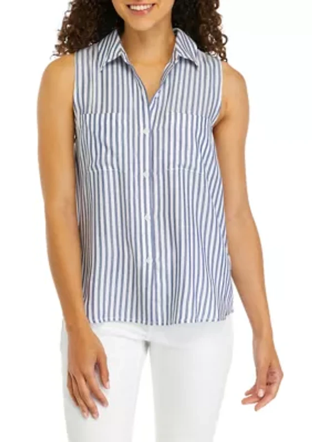Petite Sleeveless Button Up Collared Blouse