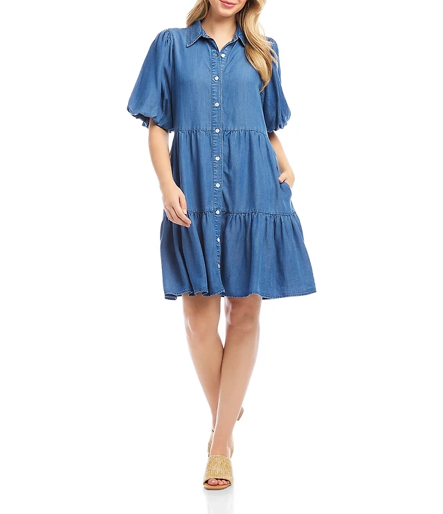 Lauren Ralph Lauren Tie-Front Puff Long Sleeve Collar Button Front Dress