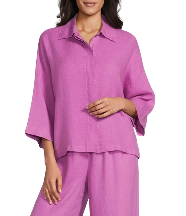 Eileen Fisher Terry Classic Point Collar Long Sleeve Shirt