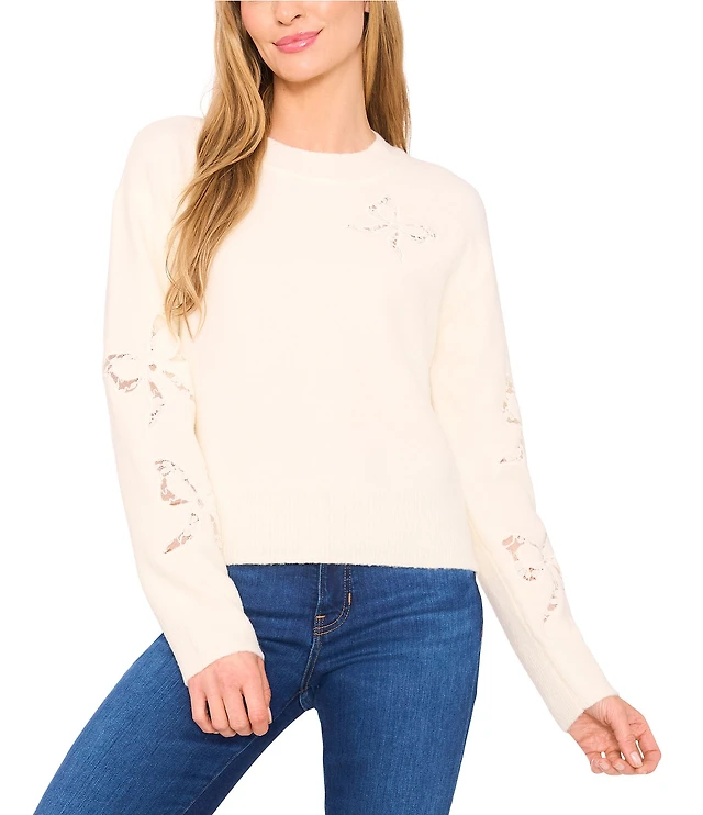 Sanctuary Boheme Pointelle Crew Neck Long Sleeve Popover Sweater