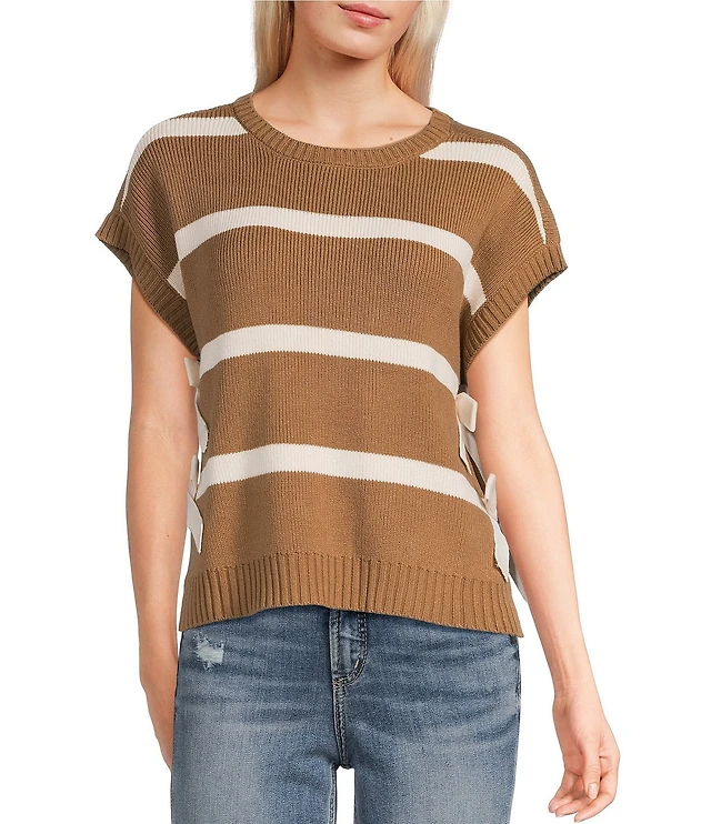 I.N. San Francisco Satin Point Collar Tie Front Short Sleeve Sweater Top