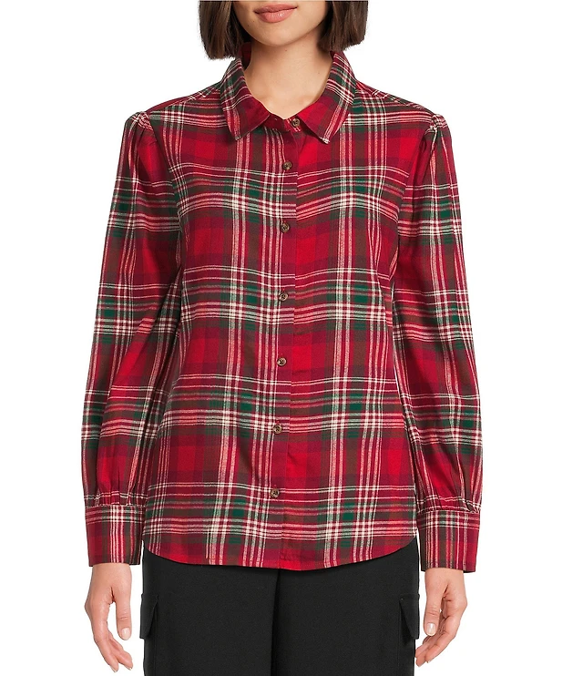 Reba Coordinating Lawson Woven Plaid Print Point Collar Long Sleeve Shirt