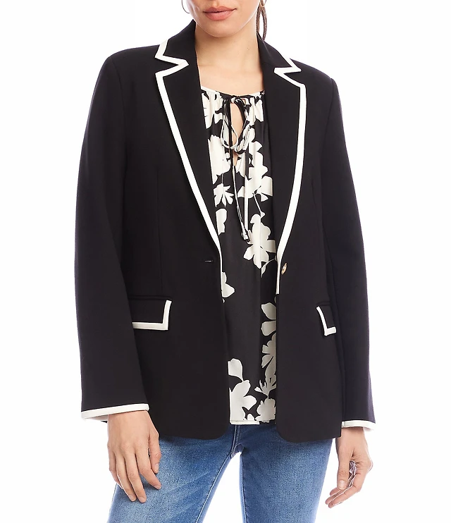 Ali Miles Petite Size Woven Abstract Multi Wire Collar 3/4 Sleeve Side Seam Pocket Button Front Jacket