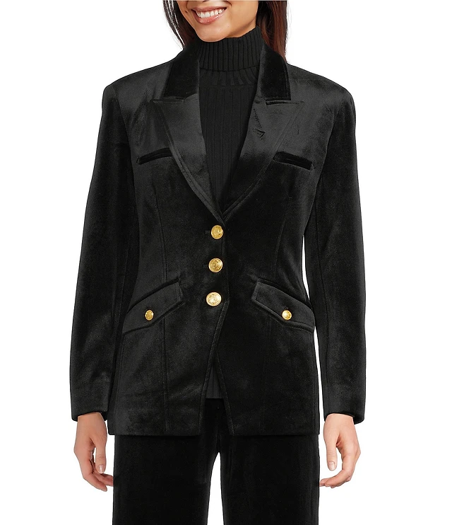 Calessa Petite Size Embroidered Velvet Stand Collar Long Sleeve Jacket