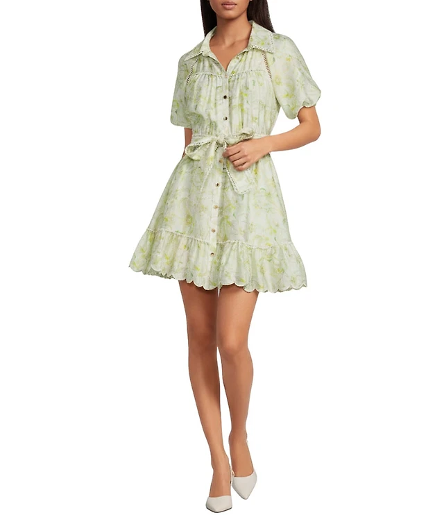 Charlie B. Linen Blend Printed Notch Collar Short Sleeve A-Line Dress