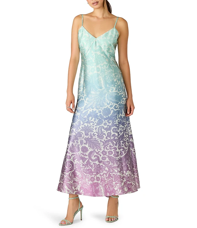 Oleg Cassini Ombre Pleated Bodre Halter Sleeveless Midi Dress