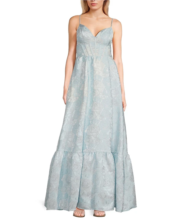 B. Darlin Sweetheart Neck Spaghetti Strap Bow Bodice Ballgown