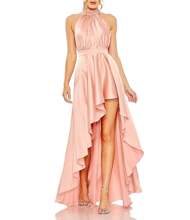 Lauren Ralph Lauren Satin Charmeuse Asymmetrical Off-The-Shoulder Sleeveless Slip Dress
