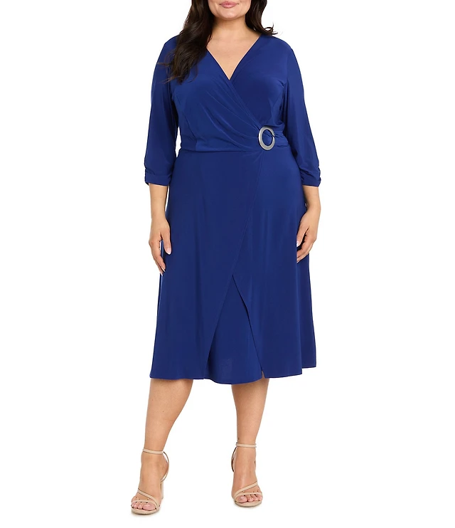 Lauren Ralph Lauren Plus Size Point Collar Elbow Sleeve Tie Front Shirt Dress