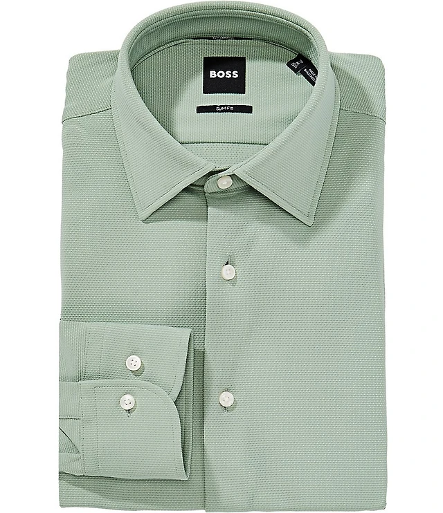 Roundtree & Yorke Slim Fit Non-Iron Spread Collar Striped Dobby Dress Shirt