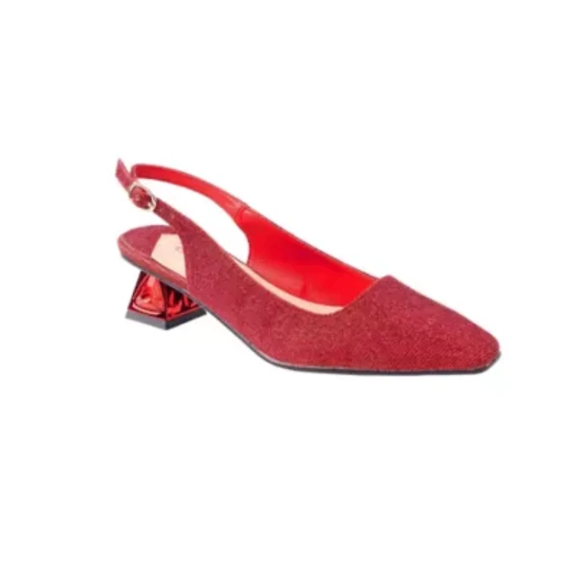 J. Renee Pranil Glitter Fabric Rhinestone Block Heel Sling Pumps