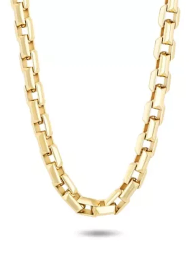 Men's Stainless Steel Yellow Finish Beveled 24" Square Link Chain Necklace