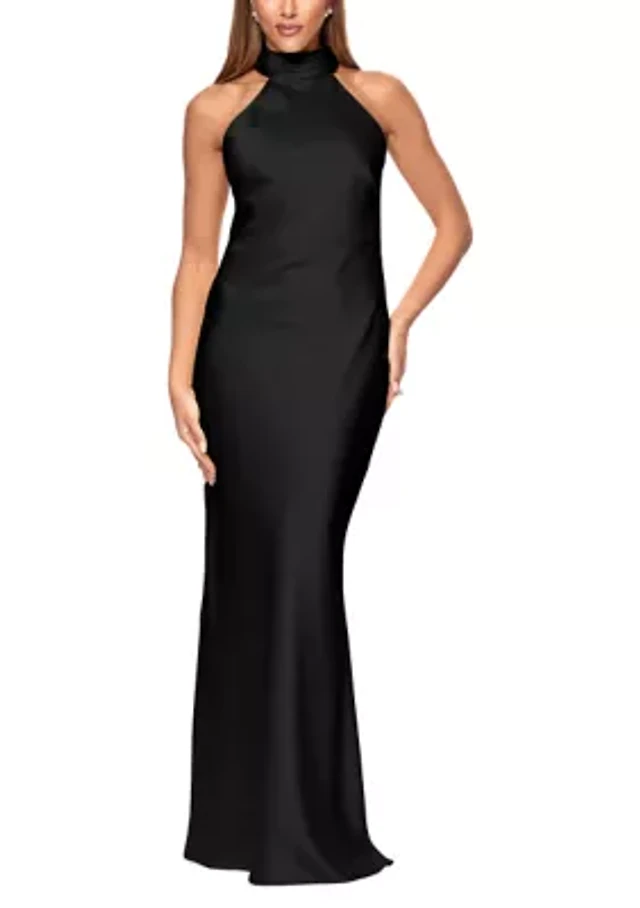 Women's Long Cowl Neck X Back Sequin Halter Gown