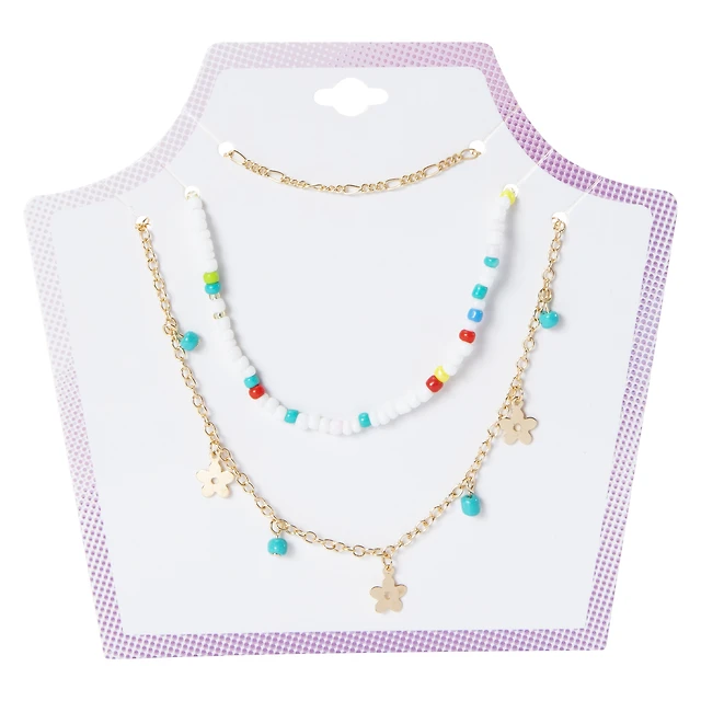 Layered Bead & Chain Necklace Set 3-Piece