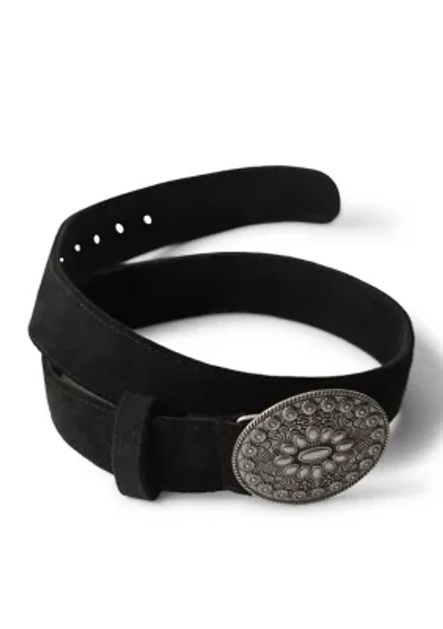 Ann Taylor Suede Round Buckle Belt Size XL Natural Tan Women's