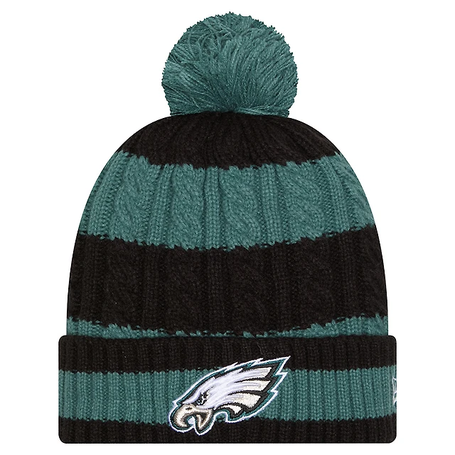 Women's New Era Midnight Green Philadelphia Eagles Braided Cuffed Knit Hat with Pom