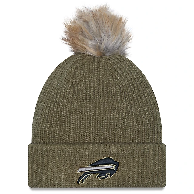 Women's New Era Dark Green Buffalo Bills 2025 Salute to Service Cuffed Knit Hat with Pom