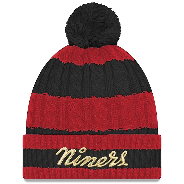 Women's New Era Black San Francisco 49ers 2025 Rivalries Collection Braided Cuffed Knit Hat with Pom