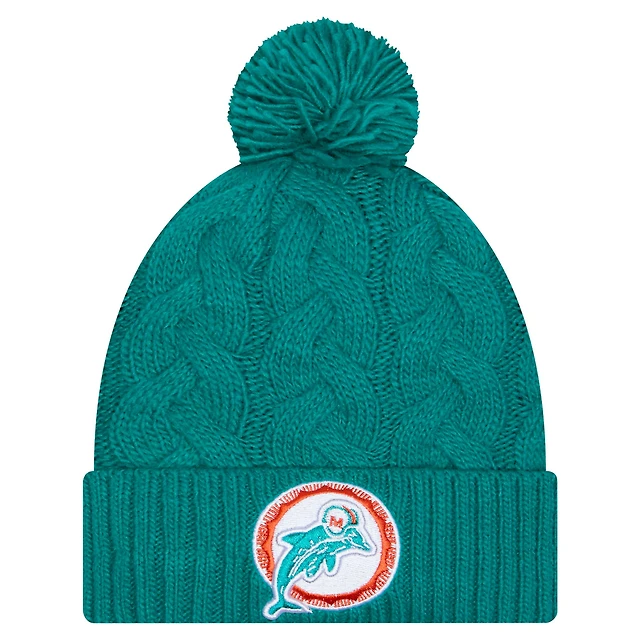 Women's New Era Aqua Miami Dolphins Cable Cuffed Knit Hat with Pom