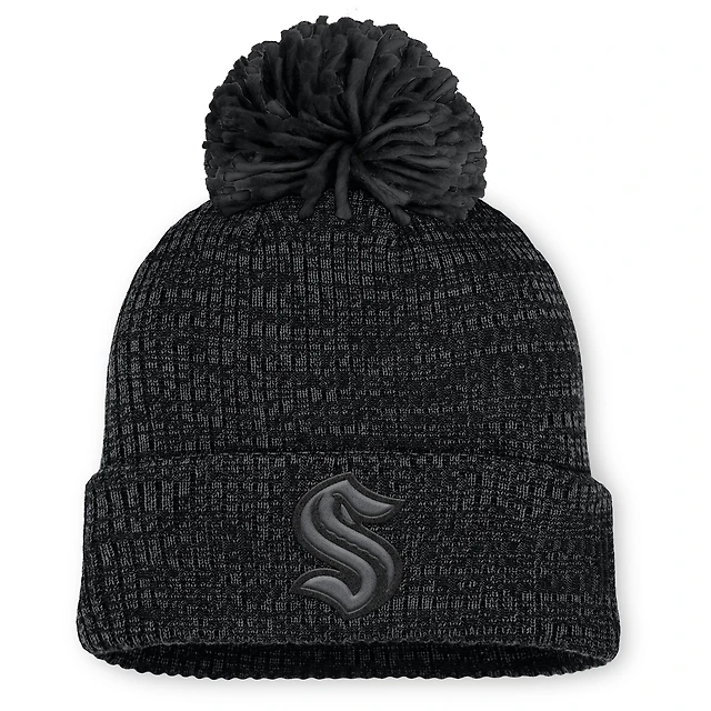 Women's Fanatics Black Seattle Kraken Authentic Pro Road Cuffed Knit Hat with Pom