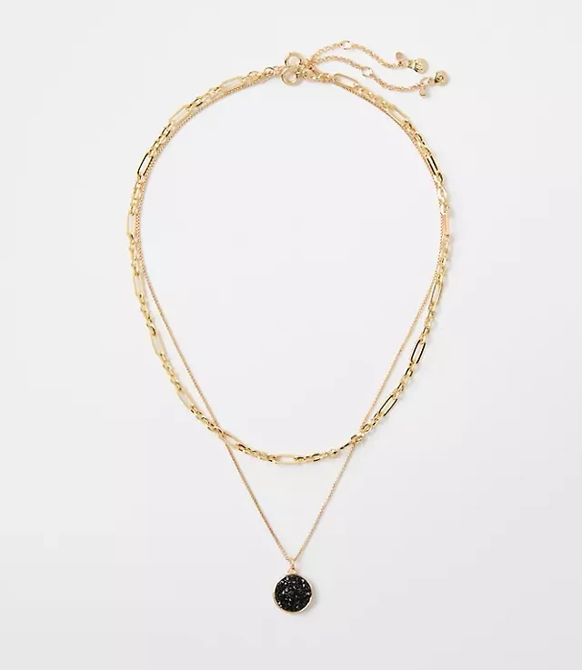 Ann Taylor Metal Gem Lariat Necklace Goldtone Women's