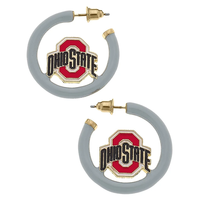 Women' CANVAS Style Ohio State Buckeyes Enamel Logo Open Hoop Earring