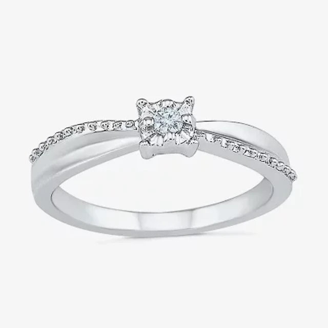 Promise My Love Womens Diamond Accent Natural White Sterling Silver Round Crossover Side Stone Ring
