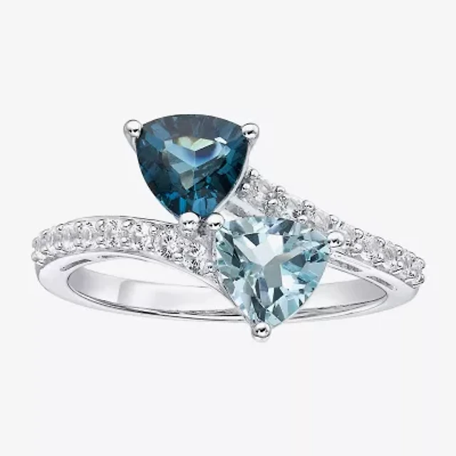 Personalized Womens Genuine Sterling Silver Heart 3-Stone Cocktail Ring