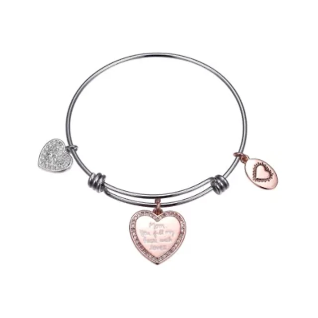 Footnotes Mom Womens Cubic Zirconia Stainless Steel Heart Bangle Bracelet