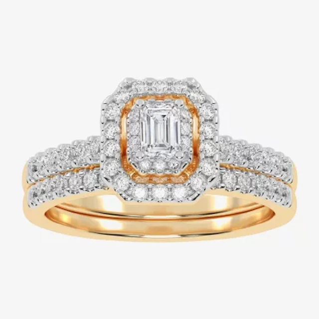 Womens 1/ CT. T.W. Natural White Diamond 10K Rose Gold Round Side Stone Halo Bridal Set