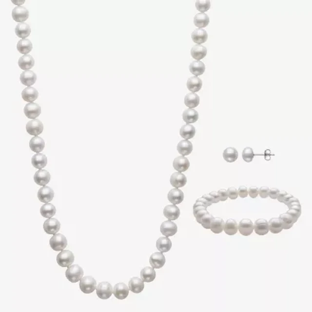 Womens White Cultured Freshwater Pearl Sterling Silver 3-pc. Jewelry Set