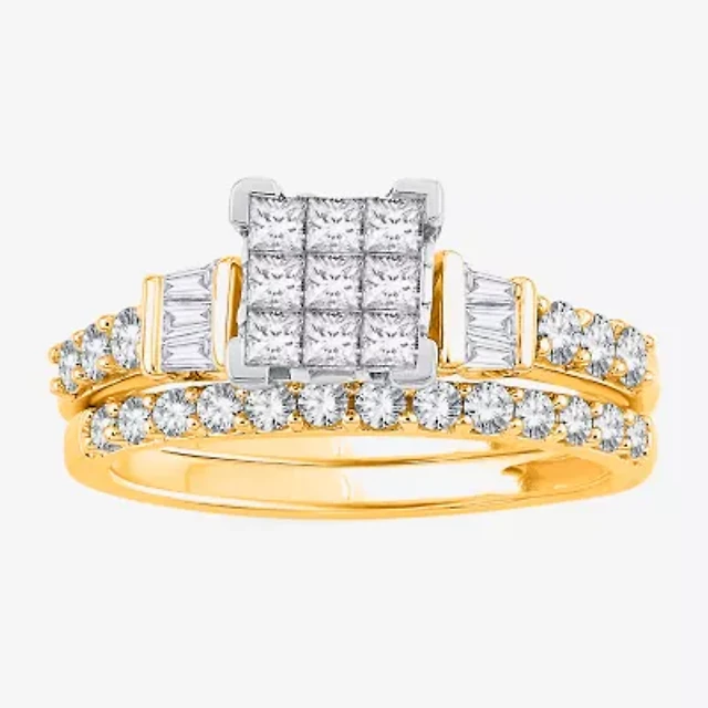 DiamonArt® Womens 2 1/3 CT. T.W. White Cubic Zirconia 14K Gold Over Silver Square Bridal Set