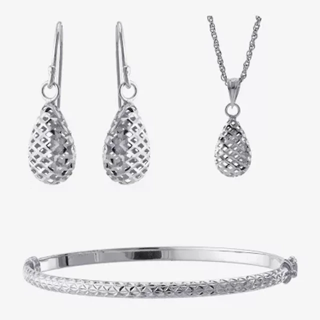 Silver Treasures Polish Womens Sterling Silver 2 Pair Earring Set