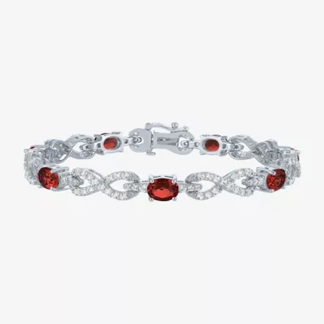 Womens Genuine Red Garnet Sterling Silver 7.5 Inch Tennis Bracelet