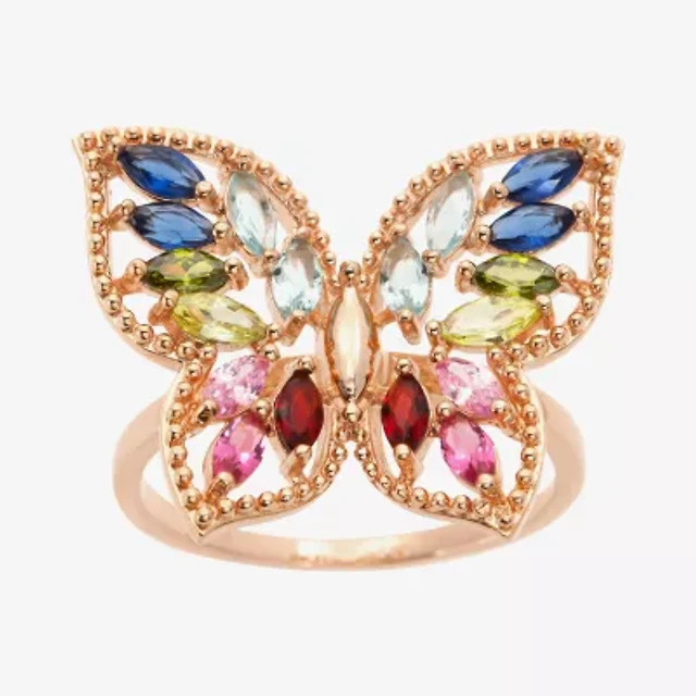 Sparkle Allure Womens Multi Color Crystal 14k Rose Gold Over Brass Butterfly Hypoallergenic Cocktail Ring
