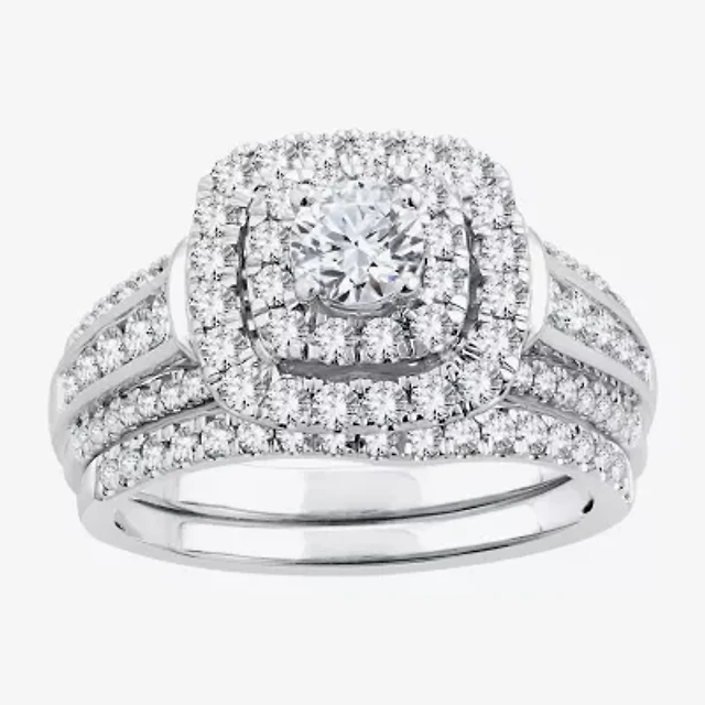 DiamonArt® Womens 1 3/4 CT. T.W. White Cubic Zirconia Platinum Over Silver Bridal Set