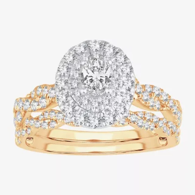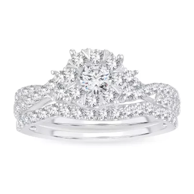 Womens 1 CT. T.W. Natural White Diamond 14K Gold Round Side Stone Halo Bridal Set