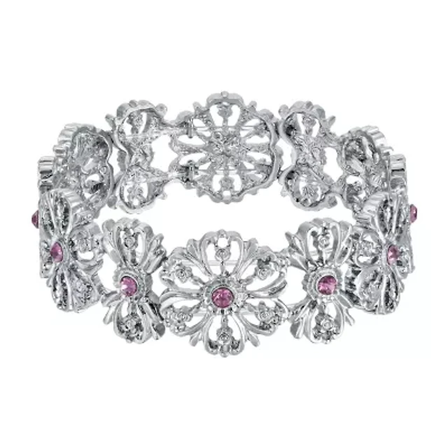 Womens Diamond Accent Genuine Purple Amethyst Sterling Silver Oval Tennis Bracelet