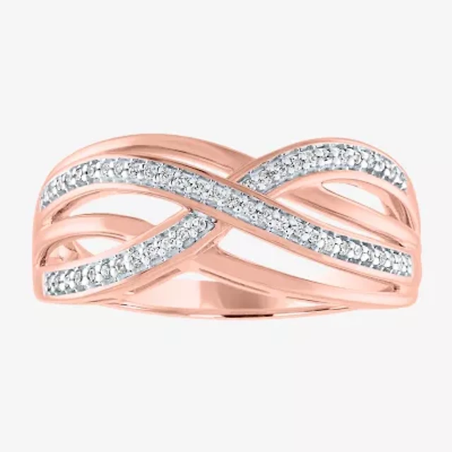 Womens 1/6 CT. T.W. Natural White Diamond 10K Rose Gold Crossover Wedding Band