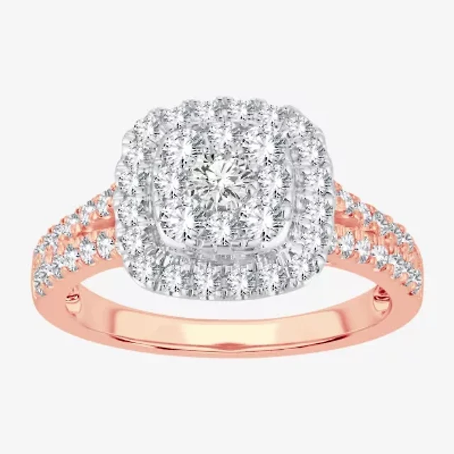 Womens 1 CT. T.W. Natural White Diamond Sterling Silver Halo Cocktail Ring