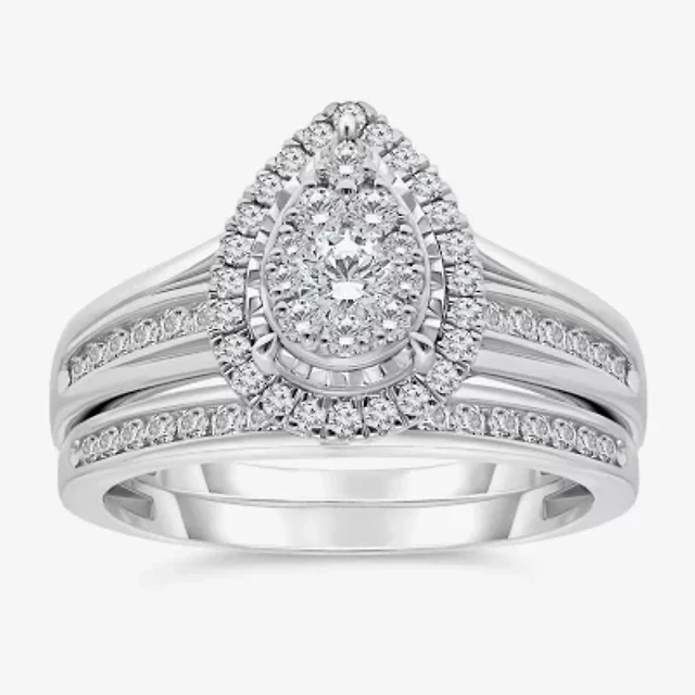 Signature By Modern Bride (G-H / Si1-Si2) Womens 4 CT. T.W. Lab Grown White Diamond 14K Gold Pear Side Stone Bridal Set
