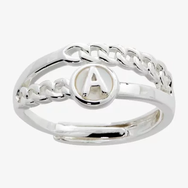 Sparkle Allure Initial Womens 3MM White Mother Of Pearl 14K Gold Over Brass Round Band