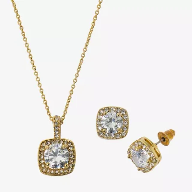 Sparkle Allure Light Up Box Womens Cubic Zirconia 10K Gold Over Brass Square 2-pc. Jewelry Set