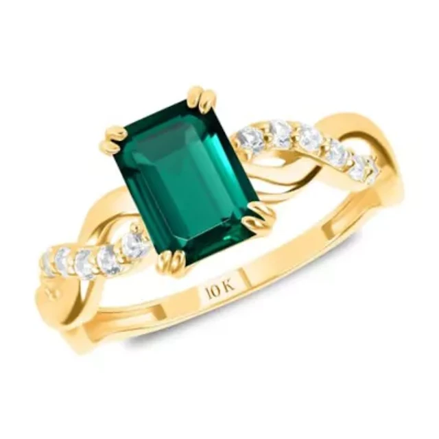 MAX + STONE Solid 10K Yellow Gold Green Emerald Rings for Women | Created May Birthstone Ring Anti Tarnish 10kt Statement Cocktail Gemstone 6