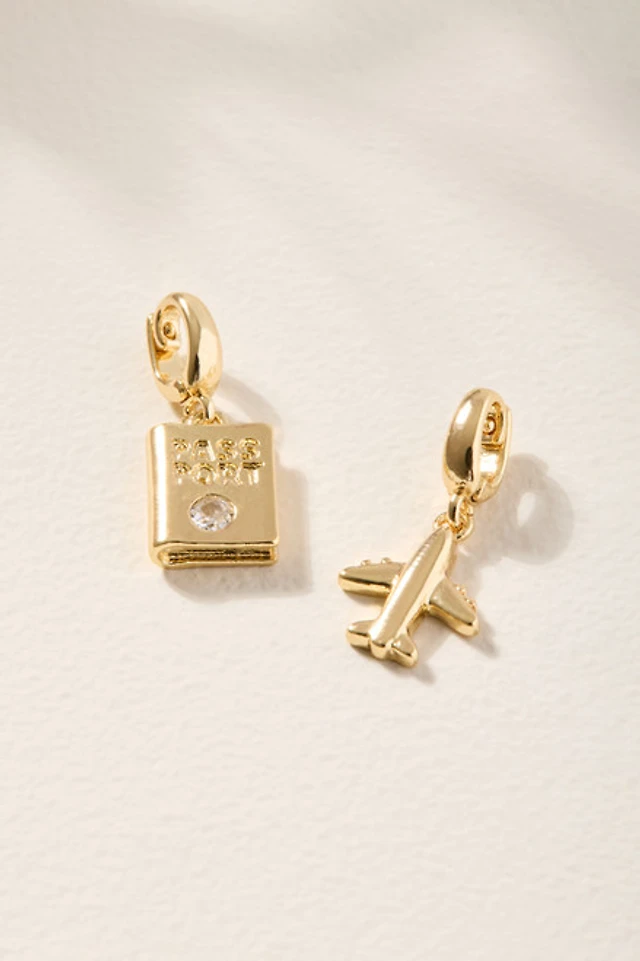 Passport and Airplane Charm Set Silver