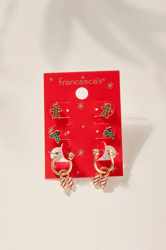 Gingerbread Candy Cane Mistletoe Earring Set