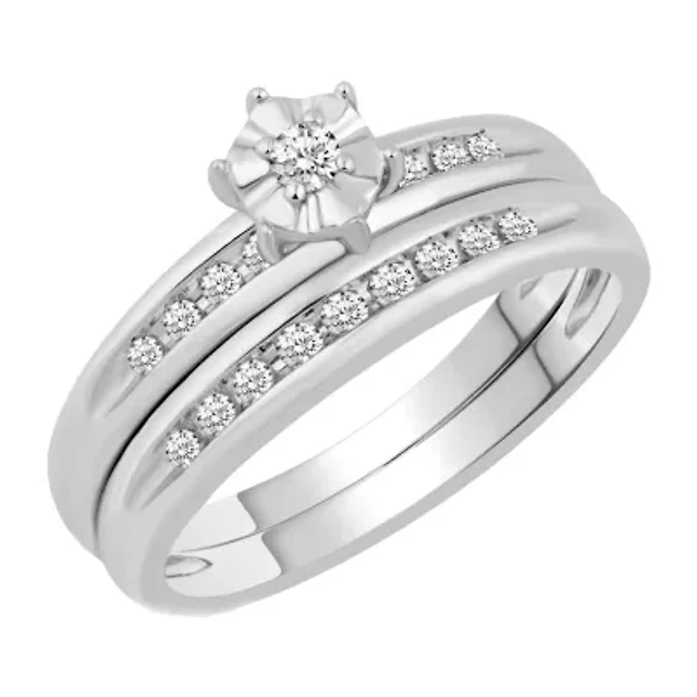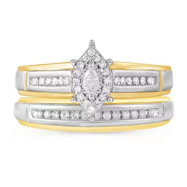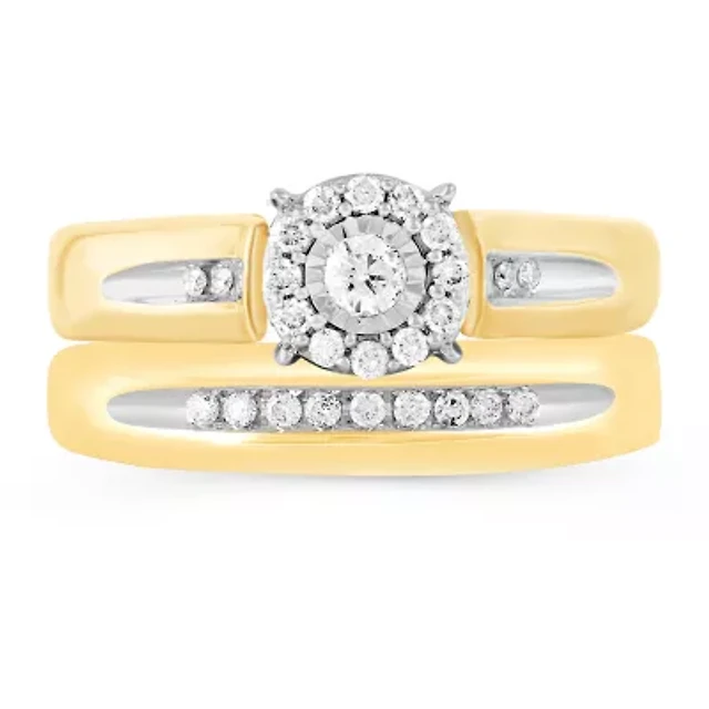 (H-I / I1) Womens 2 CT. T.W. Lab Grown White Diamond 10K Gold Round Cushion Side Stone Halo Bridal Set