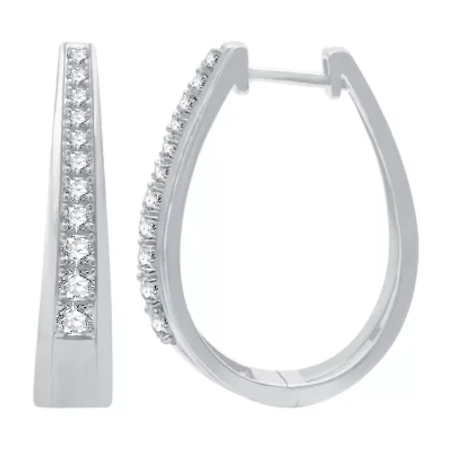 Womens 1 CT. T.W. Natural White Diamond Sterling Silver 20.5mm Hoop Earrings